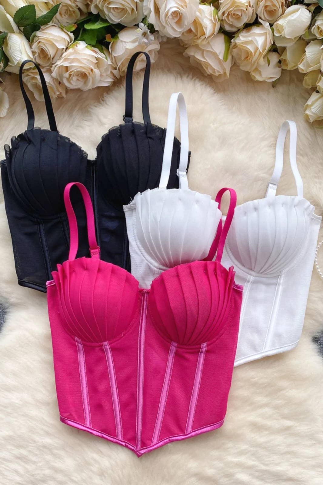 Discover the elegance of the Ariel Mesh Corset Top, featuring three stunning bras in a variety of colors. Each piece is designed with a delicate mesh overlay that offers both comfort and style, making it perfect for layering or wearing on its own. The corset silhouette enhances your natural shape, providing a flattering fit that boosts confidence. Elevate your lingerie collection with this versatile set that combines sophistication and allure, ensuring you feel beautiful and empowered every day.