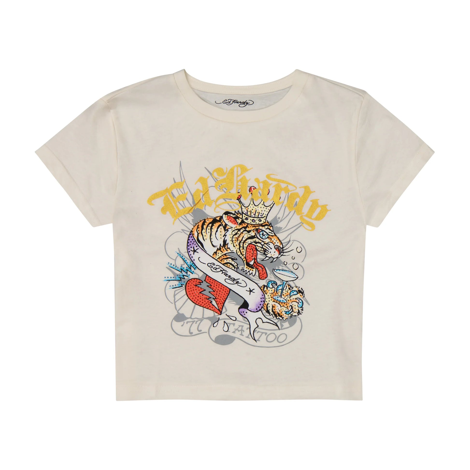 Iconic Ed Hardy design meets playful style with this tiger crown baby tee. Featuring a bold tiger graphic adorned with shimmering rhinestones, this piece captures the brand's signature edgy aesthetic in a fitted silhouette. Perfect for making a statement, whether you're channeling early 2000s nostalgia or adding attitude to your everyday rotation. Premium quality construction ensures durability through countless wears and washes.