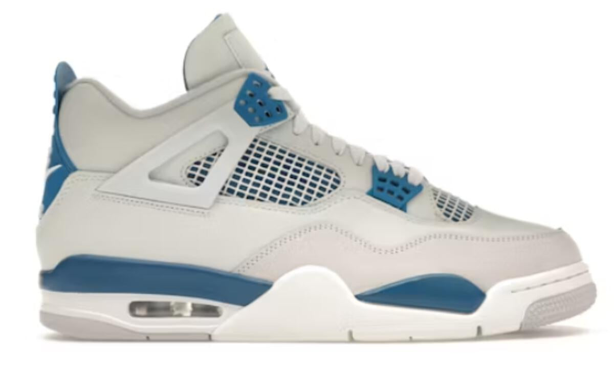 Step into style and comfort with the Jordan 4 Military Blue. Featuring a striking blue and white colorway, these shoes combine iconic design with durable materials for lasting wear. Perfect for making a bold statement on the court or in everyday wear, they offer excellent support and cushioning to keep you moving confidently all day long. Elevate your sneaker game with this timeless classic.