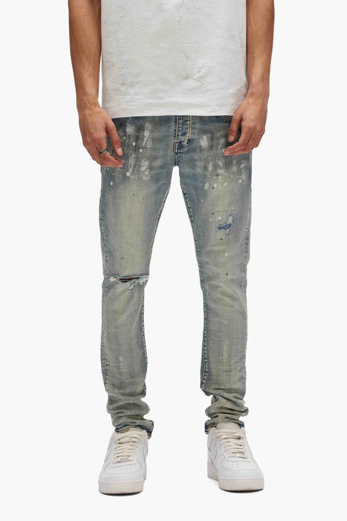 Elevate your casual style with the P001 Purple Brand Light Indigo jeans. Featuring a unique light indigo wash accented by artistic paint splatters, these jeans bring a fresh, creative edge to your wardrobe. Crafted for comfort and durability, they offer a perfect fit that moves with you. Stand out effortlessly with a pair that combines classic denim appeal with bold, modern flair.