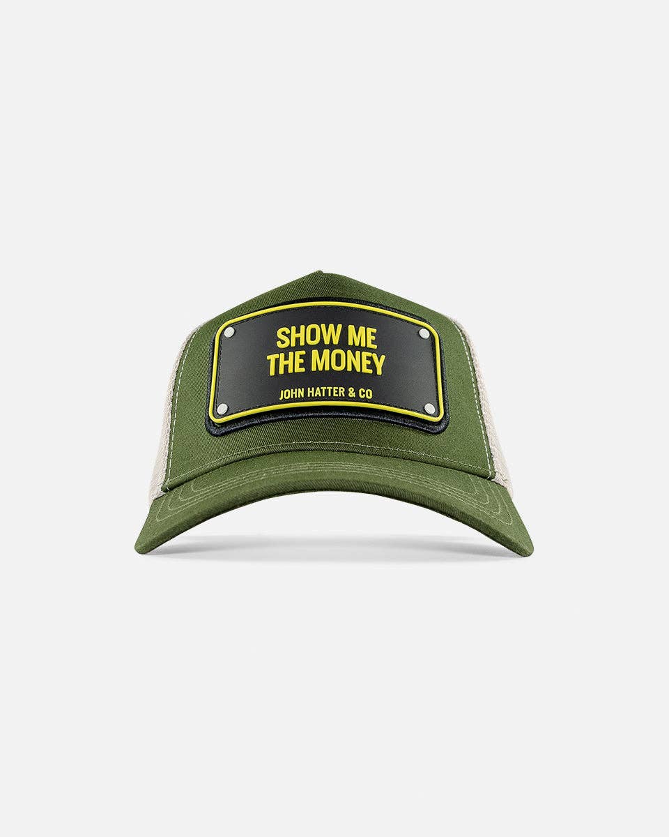 Show off your bold style with the "Show Me The Money" rubber cap from John Hatter & Co. This unisex trucker hat, inspired by the classic design, features an iconic statement printed on a miniature aluminum embossed license plate. Crafted with utmost care and quality, this cap is not just a fashion accessory, but a statement piece that you can't ignore. Whether you love it or hate it, this cap is sure to turn heads wherever you go. It's more than just a hat, it's a lifestyle. Stand out from the crowd with John Hatter & Co.