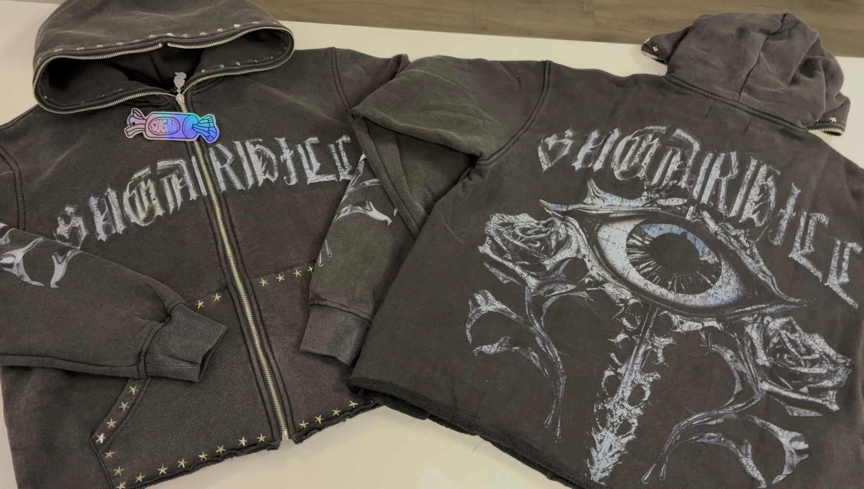 Sugarhill's "Body Shop" Zip Hoodie stands out with eye-catching back detailing and star jewels adorning the pockets—a statement piece for those who refuse to blend in. Bone motifs on the sleeves add an edgy, distinctive touch that elevates this hoodie beyond the everyday. Premium construction meets bold design, making it the perfect layer for streetwear enthusiasts who demand both style and substance. Own the look that turns heads.